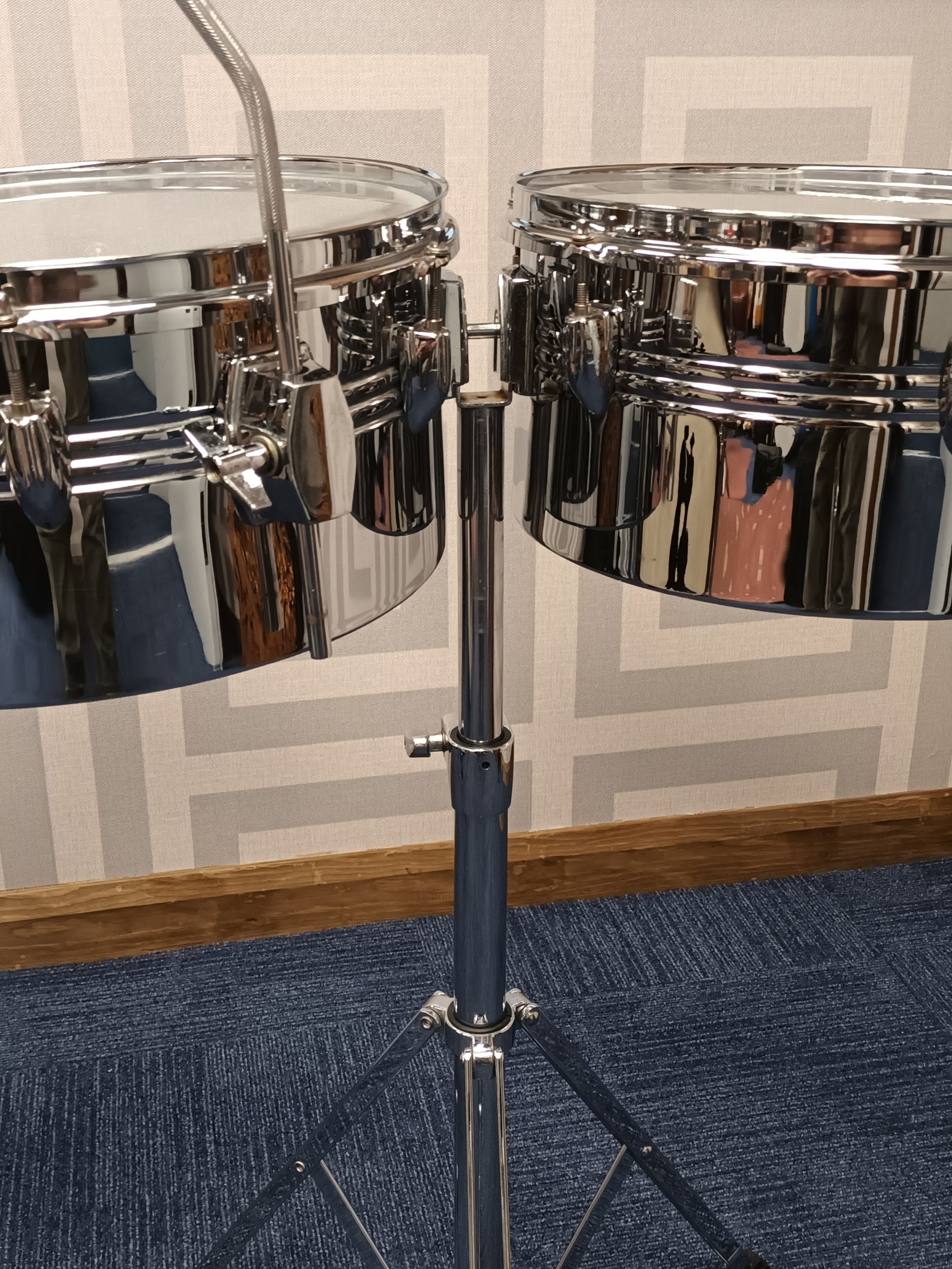 Percussion Plus 13″ & 14″ Steel Timbale Drums & stand