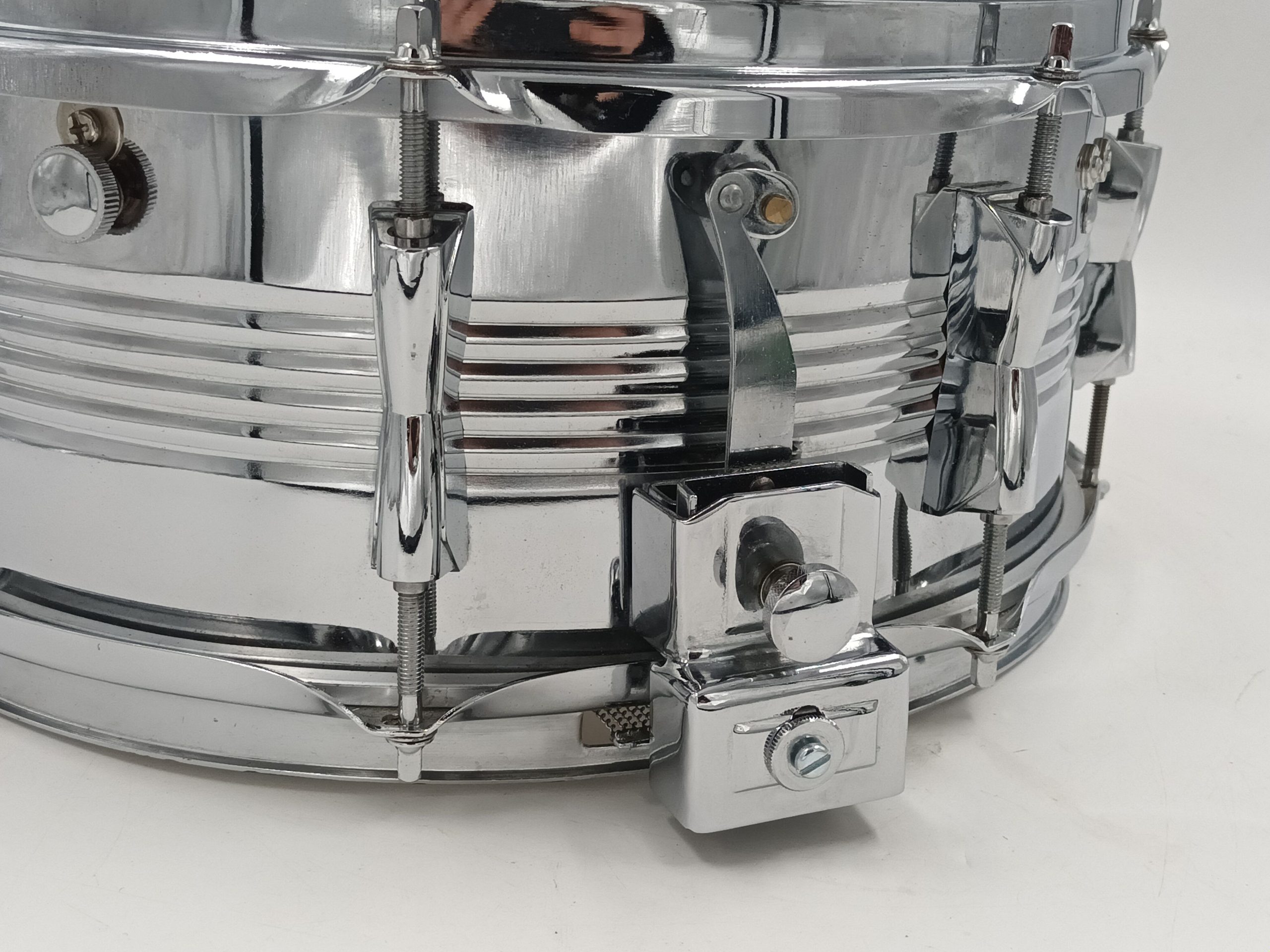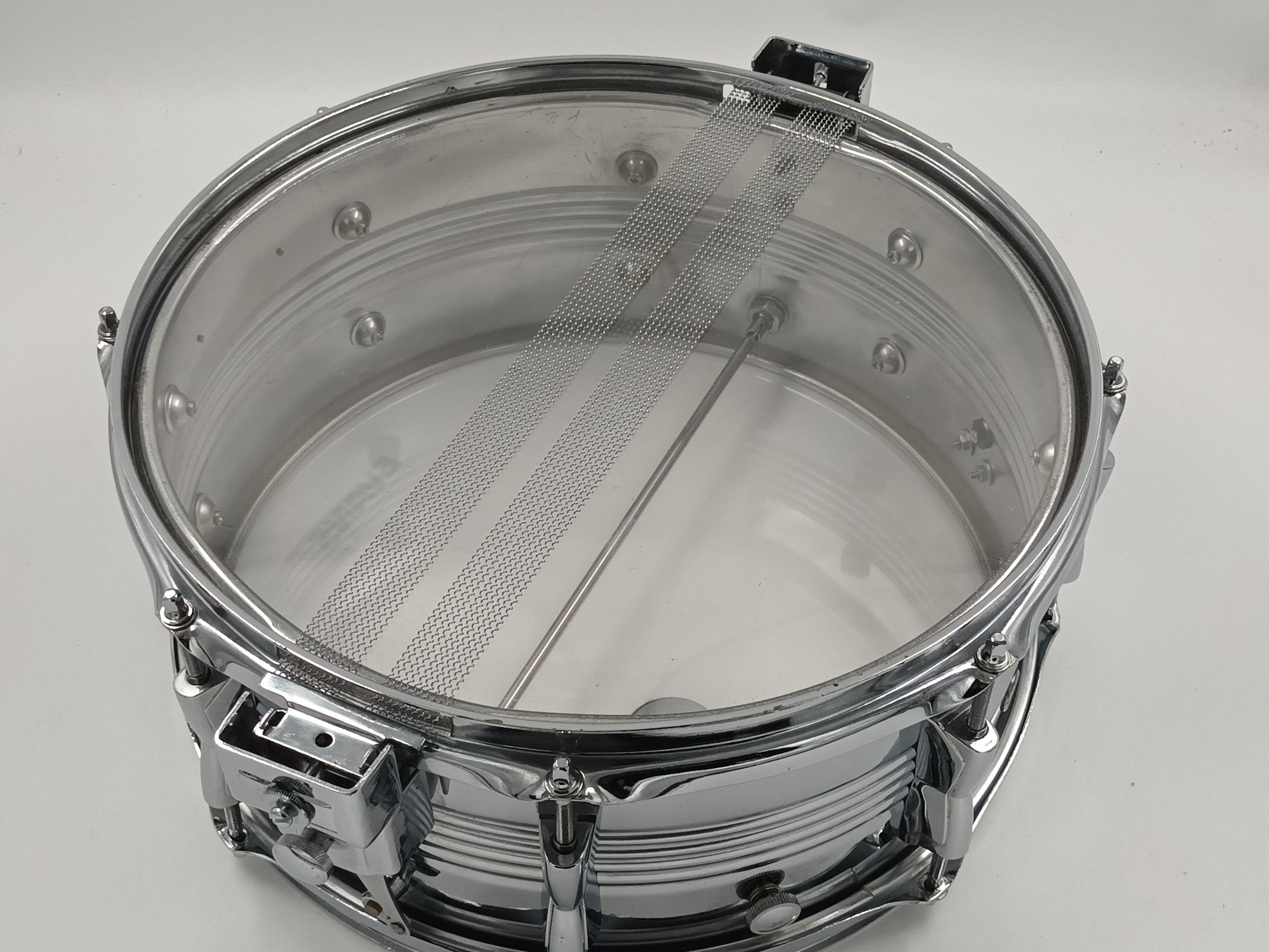 Parallel action snare mech – One tension knob has been replaced with a screw/thumbscrew